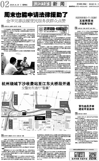 “在法援中心、法援工作站、法援联络点的基础上,金华已形成‘横向到边、纵向到底’的法律援助服务网络,大大方便了群众寻求法律援助。”金华市法援中心主任方延平表示。