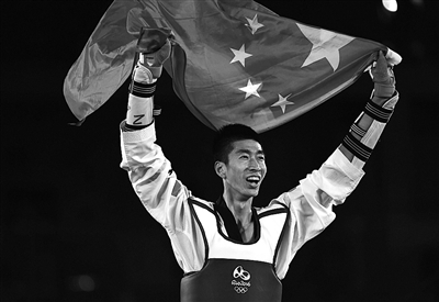 8月17日,赵帅庆祝夺冠。当日,在2016年里约奥运会跆拳道男子58公斤级决赛中,中国选手赵帅战胜泰国选手,夺得冠军。
