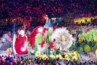 | 闭幕式尾声的桑巴花车巡游表演 燕雁 摄 |