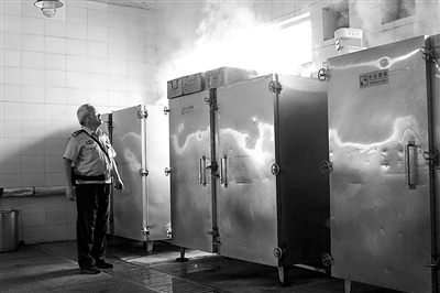 每天一到岗,点完名,他的第一件工作就是检查蒸汽阀门、电器开关等是否处于安全状态,只有等他检查完毕,才能开机。随后,开始核对菜谱和食材领用单,核对无误后,他才打开了仓库照单发放食材。食材虽然都是前一天才入库的,但每次领用前他都要再一一检查,确保食材没有变质损坏。最近,天气炎热,原本又青又嫩的冬瓜表皮有些发软发黄,老韩不放心,发放前都要一个个检视,没问题的才准许拿去上机切块入锅。正是因为他的执着,监内的食品卫生多了一道安全屏障。