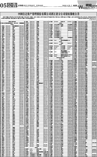 中国信达资产管理股份有限公司浙江省分公司债权催收公告