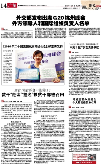 《2016年二十国集团杭州峰会》纪念邮票将发行