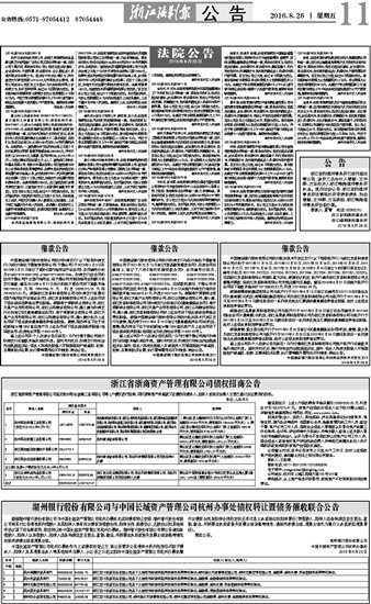 湖州银行股份有限公司与中国长城资产管理公司杭州办事处债权转让暨债务催收联合公告