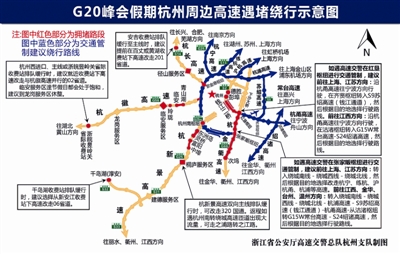 为方便市民出行,昨天,杭州高速交警发布了G20峰会假期杭城周边高速出行指南。高速交警预测,峰会假期期间高速将迎来短途出行的高峰。其中,出行高峰将主要集中在8月31日下午和9月1日、2日上午;返程高峰将主要集中在6日和7日下午,特别是9月7日假期最后一天,因不受单双号限行限制,届时返程车辆将出现“爆棚”(具体路段和绕行路线见示意图,也可关注浙江法制报微信,微信号zjfzbs或扫一扫二维码)。