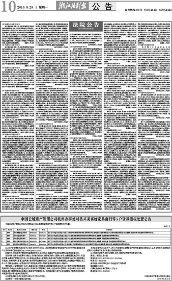 中国长城资产管理公司杭州办事处对吴兴美真好家具商行等5户贷款债权处置公告