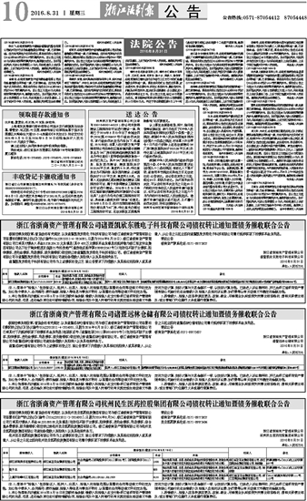 浙江省浙商资产管理有限公司杭州民生医药控股集团有限公司债权转让通知暨债务催收联合公告