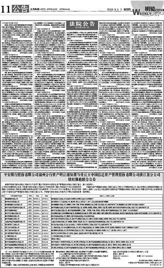平安银行股份有限公司温州分行资产转让通知暨与受让方中国信达资产管理股份有限公司浙江省分公司 债权催收联合公告