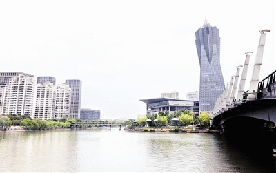 | 武林门码头两畔高楼林立 |