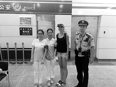 9月3日中午,一名金发女子慌慌张张地跑进杭州地铁武林广场站警务室,几分钟后,她微笑着走出来,还主动要求与帮助她的民警方浩及英语服务队志愿者王妍伃、张虞合影。