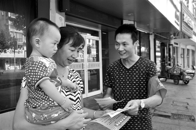 社区“夕阳红”平安志愿者正在居民小区巡查,清除垃圾广告