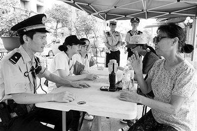 9月5日下午,民警会同平安志愿者在杭州市下城区武林路龙游路口,为过往群众提供法律咨询、安防知识宣传、免费充电、饮用水供应等便民服务。