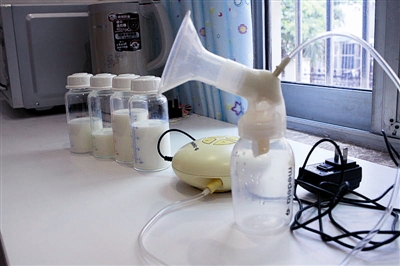 几番折腾后,庞宁宁还是走上了背奶之路。1个双肩包、4个奶瓶、1个电动吸奶器,就是她的装备。每天白天,庞宁宁将挤出的母乳储存在奶瓶中,晚上带回家,给孩子当第二天的口粮。