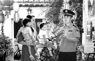 昨天,台州市公安局黄岩分局城东派出所民警,在老街向群众宣传防范电信诈骗知识。