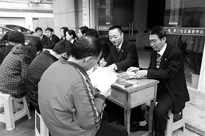 | 赵云忠生前和同事在社区为群众提供法律咨询服务 |