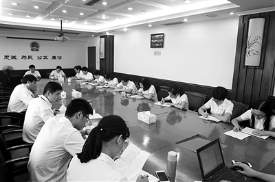 8月15日傍晚,在外奔波一天的执行法官张剑没有回家,啃着顺手买的面包回到了法院。这天虽不需要加班,却是比加班更重要的日子——周一政治学习日。每周一晚,阅读省高院、绍兴中院文件,学习最新政策精神已成法院惯例。