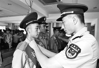 昨天上午,担负省府警卫任务的武警杭州支队十七中队举行退役士兵离队仪式。数十位老兵脱下戎装、泪别警营。