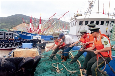 | 边防官兵帮助渔民加固船舶 |