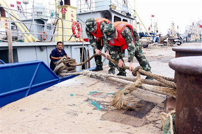 舟山公安边防支队罗家岙边防派出所官兵深入辖区港口、码头、船舶停泊点,帮助渔民转运渔用物资,加固船只,向渔民宣传台风期间船舶停港避风安全事项和防台防汛的应急措施,确保台风期间辖区安全稳定。此外,官兵还加强辖区街面及港口码头巡逻,最大限度保障辖区群众的人身财产安全。