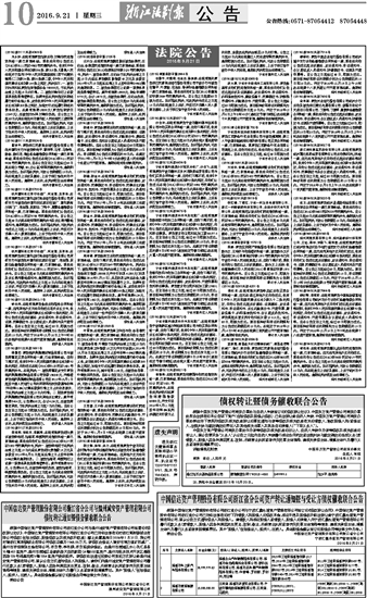 中国信达资产管理股份有限公司浙江省分公司资产转让通知暨与受让方债权催收联合公告