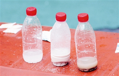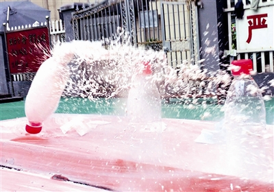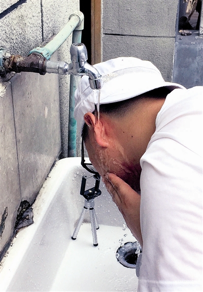 | 本报记者用流水长时间冲洗被液体溅到的脸部 |