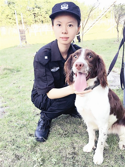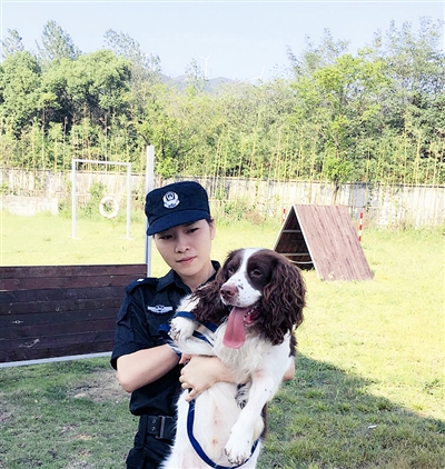 在女子训犬队成立之初,大眼睛姑娘丁玉兰便加入了进来,和她的史宾格警犬仔仔,一同工作、生活、成长。