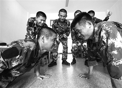 | 在新兵宿舍,黄熠杰与班长打起了擂台 |