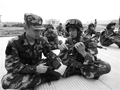| 初入警营的黄熠杰向老兵学习武器装备使用知识 |