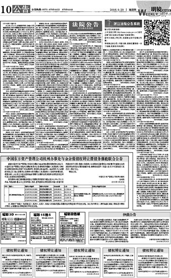 中国东方资产管理公司杭州办事处与金余张债权转让暨债务催收联合公告