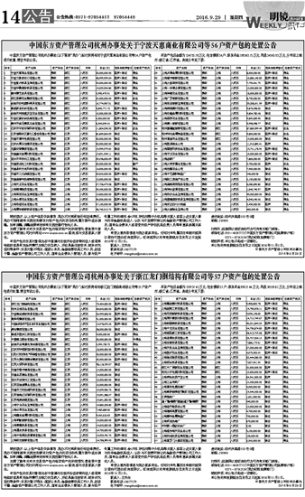 中国东方资产管理公司杭州办事处关于宁波天惠商业有限公司等56户资产包的处置公告