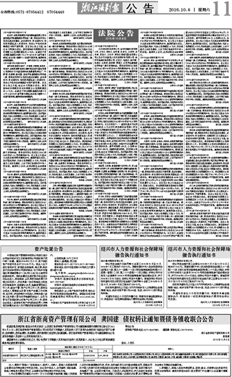 浙江省浙商资产管理有限公司 龚国建 债权转让通知暨债务催收联合公告