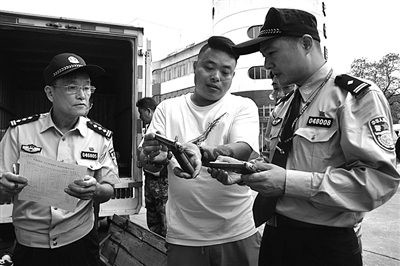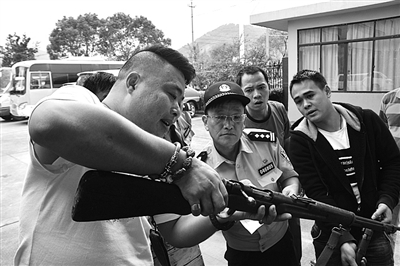 近日,电视剧《绝密狙击》在南北湖影视基地开拍,一批道具枪支由专人押运到剧组。昨天,海盐县公安局澉浦派出所民警开展了验枪工作,每一支枪都被仔细编号并登记入库。