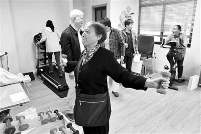 图为颐康苑免费提供锻炼器材和康复师辅导。