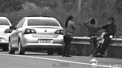 轿车高速自燃 围观者嗑瓜子拍照被扣6分