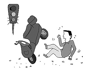 2015年元旦傍晚,大冷天,嘉善务工人员老曹骑二轮摩托车,行至嘉善县魏塘街道环北路施家路红绿灯路口处,突然车子一滑,老曹狠狠地摔在了地上,当即痛得大喊救命。附近群众看到了,纷纷议论说:“根本刹不住车啊。这种天气,就不该洒水。”
