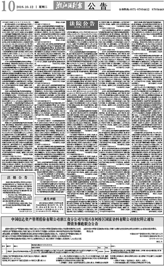 中国信达资产管理股份有限公司浙江省分公司与绍兴市柯桥区国富染料有限公司债权转让通知 暨债务催收联合公告