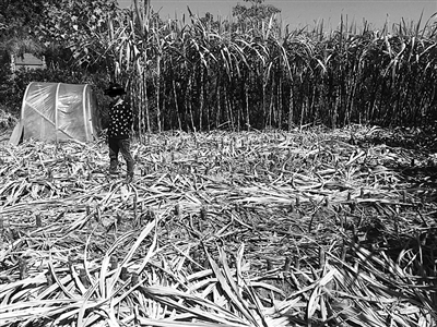田里来了不速之客 一觉醒来,上千根甘蔗遭了秧