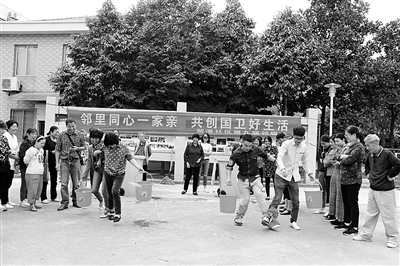 10月10日下午,在常山县紫港社区的广场,来自县公路管理局的十多名居住在此社区的职工,参加了“邻里同心一家亲、共创国卫好生活”的紫港社区第九届邻居节活动。