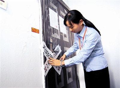 | 房子腾空后,法官在房门上张贴封条 |