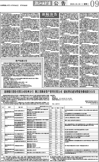 渤海银行股份有限公司杭州分行 浙江省浙商资产管理有限公司 债权转让通知暨债务催收联合公告
