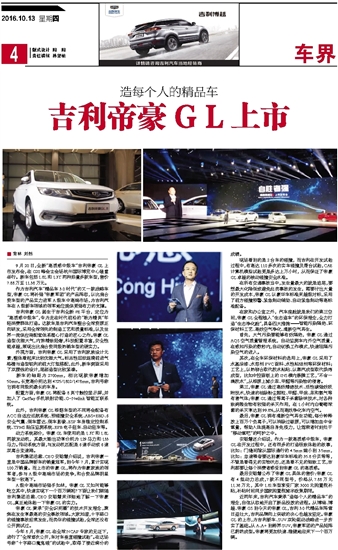 安聪慧还介绍说,作为一款高质感中级车,帝豪GL在开发过程中,还有很多的打造极致体验的故事,比如:门缝间隙从国际通行的4.5mm缩小到3.5mm,比如:怠速噪音要达到豪华车标准的35.8分贝等等,不管是看得见的实物状态,还是看不见的细致工艺,吉利都要让每个消费者感受到帝豪GL的高质感。