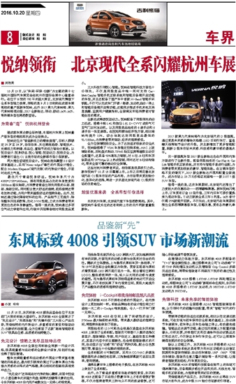 浙江法制报 浙江车界 00029 悦纳领衔 北京现代全系闪耀杭州车展 2016-10-21 2 2016年10月21日 星期五