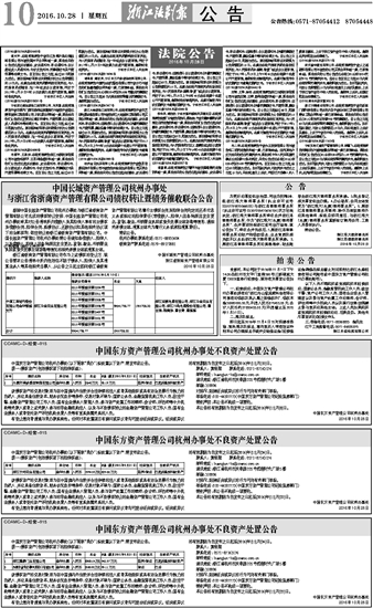中国长城资产管理公司杭州办事处 与浙江省浙商资产管理有限公司债权转让暨债务催收联合公告