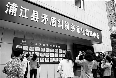 浦江县矛盾纠纷多元化调解中心门口,整整三排的30个个人调解室名单引人注目:浦阳街道中山社区的董圣航、黄宅镇曹街村的曹龙水、仙华司法所的朱振华……当地百姓信任的调解能手,都到这里“集中办公”。