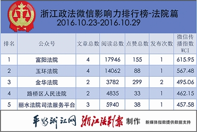 “富阳法院”实力突飞猛进,从近几期的第四、第五,一路过关斩将,最终荣登榜首,傲视群雄;“玉环法院”表现出色,上升一个名次,名列第二;小鲜肉“金华法院”表现稳定,排行第三。