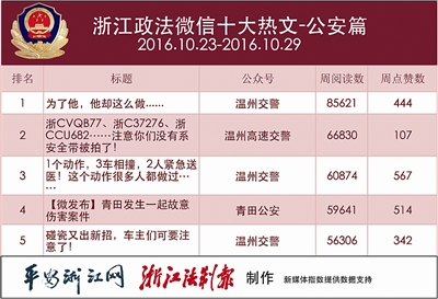 热文榜前三席中,“温州交警”独占两席,分别是领跑榜单的《为了他,他却这么做……》和位列第三的《1个动作,3车相撞,2人紧急送医!这个动作很多人都做过……》。小编心得,警示类的文章不但可以触动网友的心声,也可以让微信大放光彩!