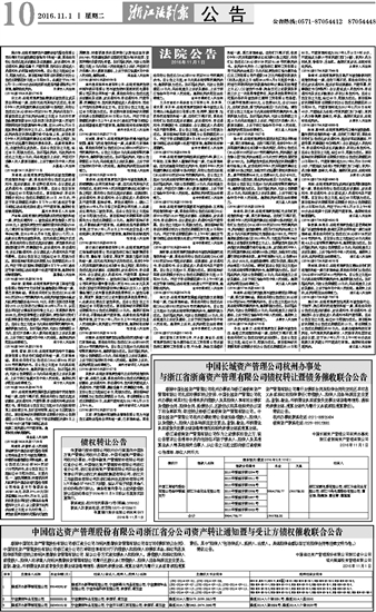 中国信达资产管理股份有限公司浙江省分公司资产转让通知暨与受让方债权催收联合公告