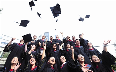 11月6日,在国家开放大学(广州)分部举行的“求学圆梦行动”计划成果展示会上举行的毕业典礼后,学生们抛起学士帽庆祝毕业。