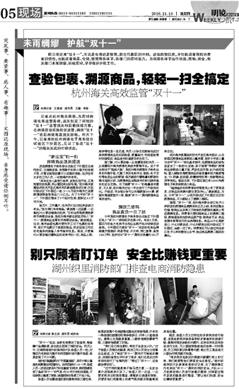 记者从杭州海关获悉,为应对跨境电商监管高峰,该关制定了详细的“双十一”监管通关和后勤保障方案,在跨境现场实施轮班监管,确保“双十一”前后跨境商品通关顺畅。昨天下午,记者来到杭州跨境电子商务综合试验区下沙园区,见证了备战“双十一”的海关关员的忙碌状态。