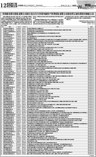 中国建设银行股份有限公司浙江省分行与中国华融资产管理股份有限公司债权转让通知暨债务催收公告