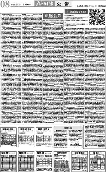 包金春:本院受理原告杭州天道建材有限公司诉你买卖合同纠纷一案,已审理终结。现依法向你公告送达(2016)浙0191民初1416号民事判决书。自公告之日起,60日内来本院领取民事判决书,逾期则视为送达。如不服本判决,可在公告期满后15日内,向本院递交上诉状及副本,上诉于杭州市中级人民法院。逾期本判决即发生法律效力。杭州经济技术开发区人民法院